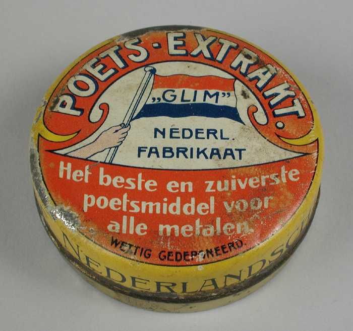 fabrikant poetsmiddel: Glimfabriek nv / blik: onbekend