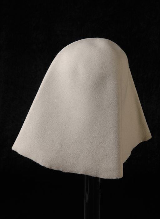 Proefmodel van een ronde hoed zonder rand, toque-achtig