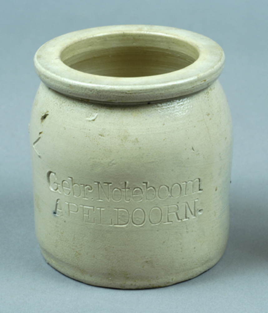 voorraadpot van keramiek met opschrift Gebr. Noteboo...