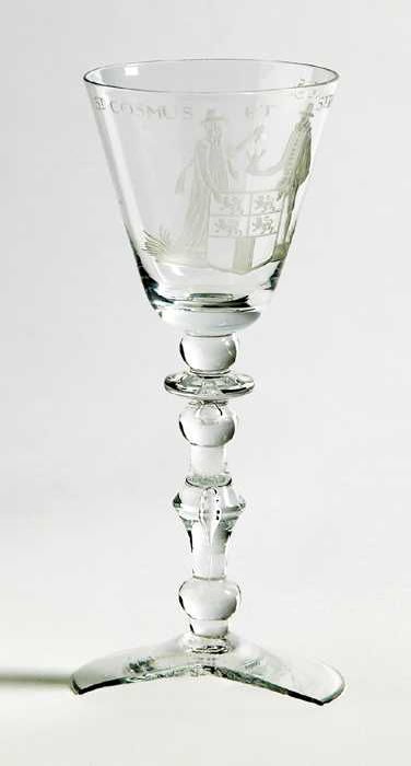 Kelkglas gegraveerd met wapen van Rotterdam, twee do...