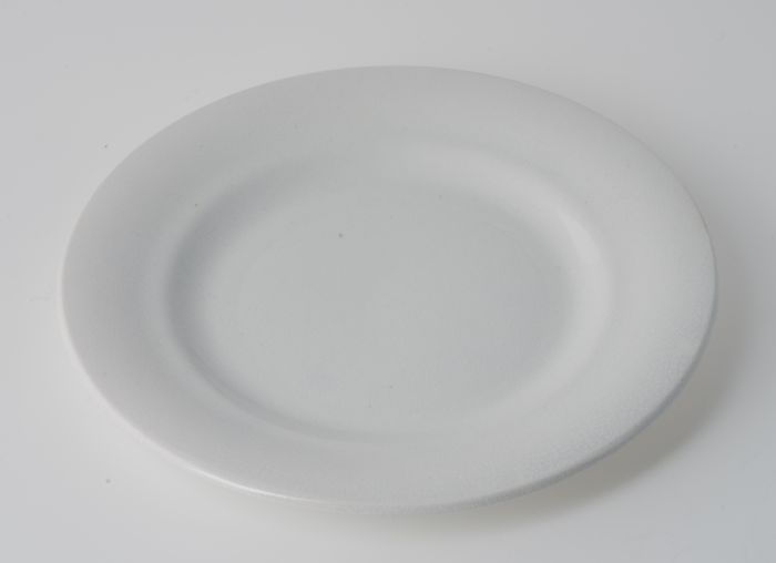 Wit geglazuurd miniatuur dinerbord, proenen op spiegel