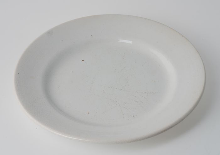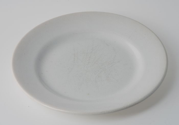 Wit geglazuurde aardewerk miniatuur dekschaal, schaa...