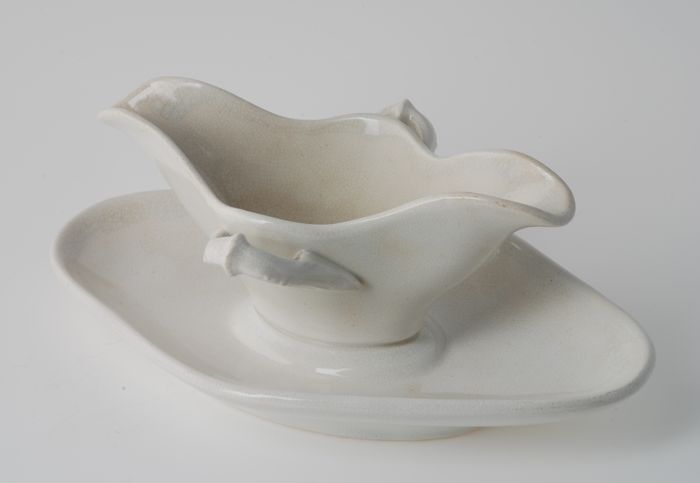 Wit geglazuurde miniatuur juskom, langwerpige kom me...