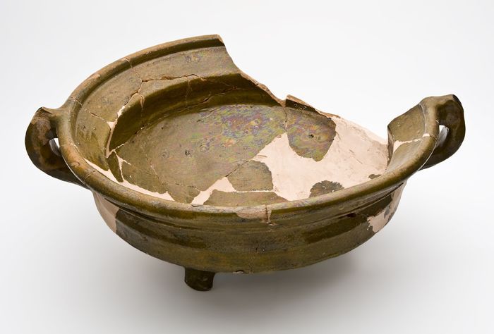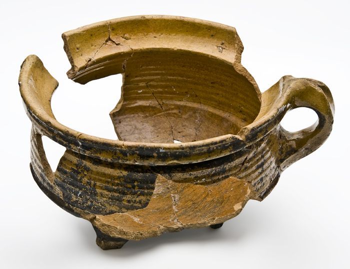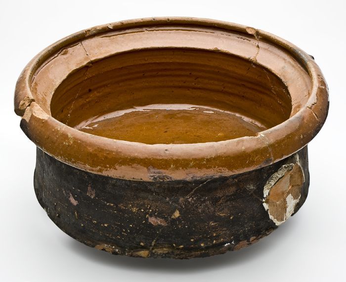 Fragmenten van kookpot, inwendig geglazuurd, bandore...