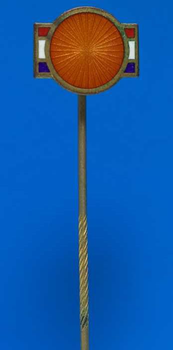Rood-wit-blauw embleem aan speld met oranje cirkel