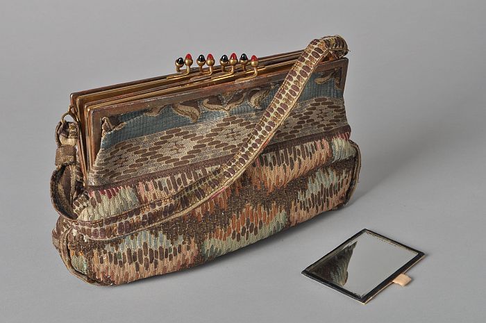 Handtas met goudbrokaat en zilverbrokaat, vier-dubbe...