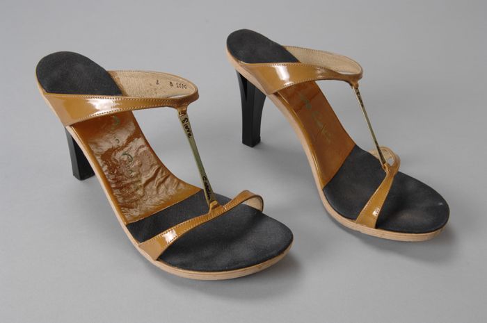 Vierkante koperen penning met afbeelding schaats, "Y...