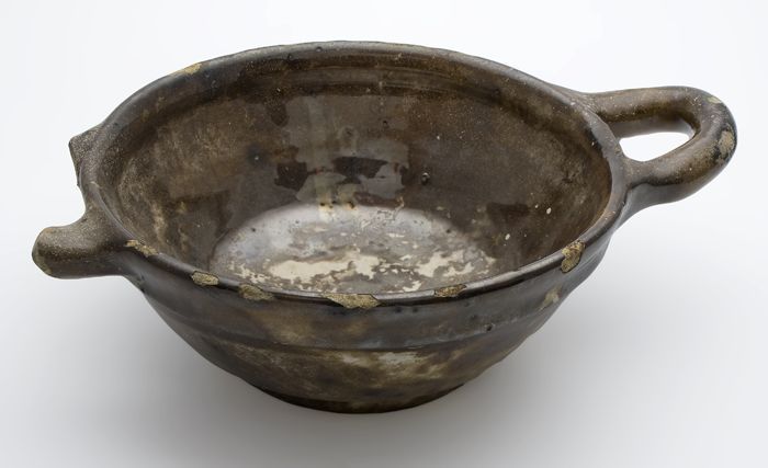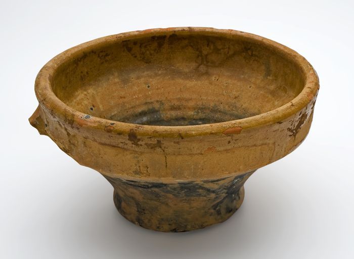 Aardewerk kookpot met wijde bovenrand en twee bandor...