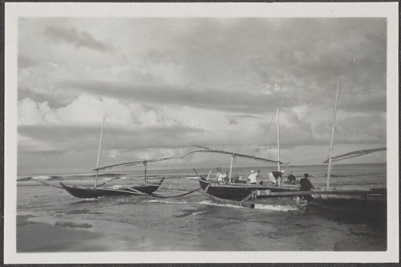 Vissers met netten in de branding bij Tjisolok, Wijn...