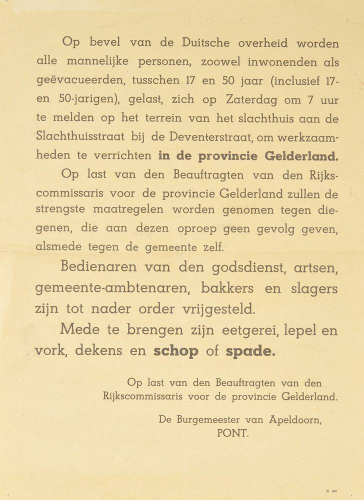 bevel Duitsche overheid om zich te melden voor werk ...