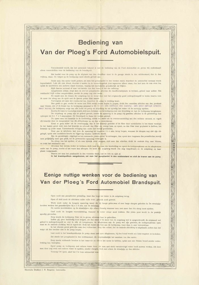 Bediening van Van der Ploeg's Ford Automobielspuit