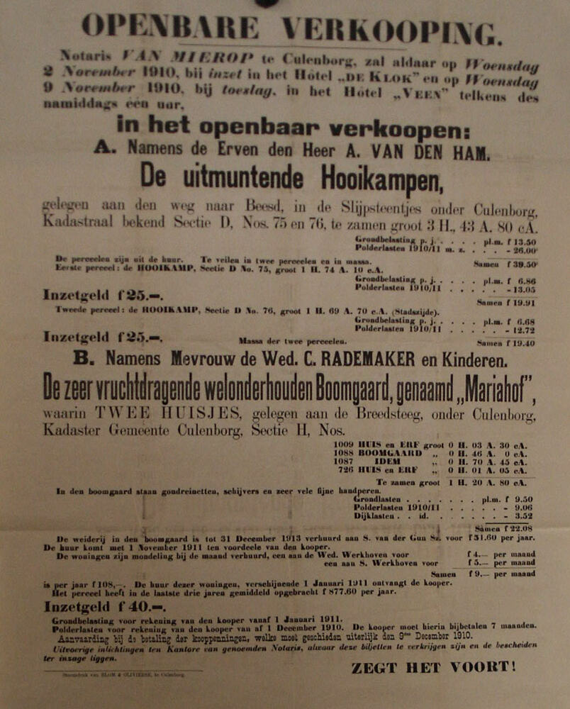 Affiche voor een openbare verkoping van de Hooikampe...