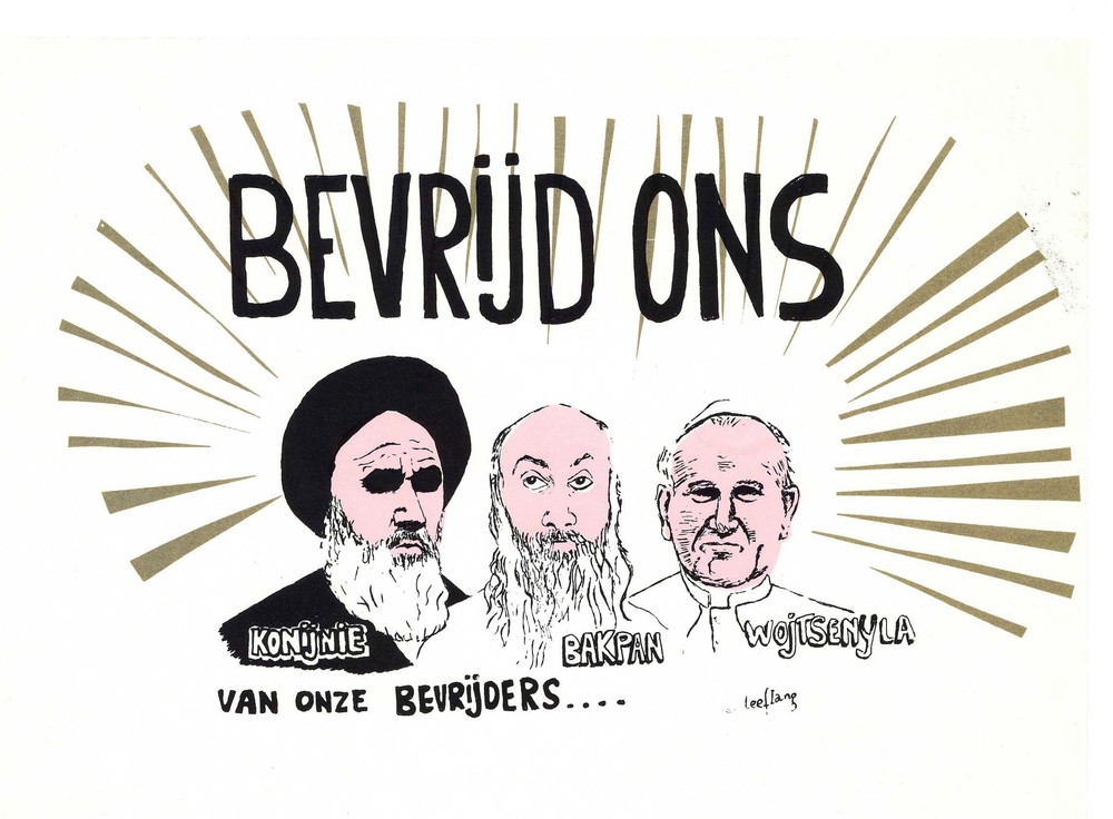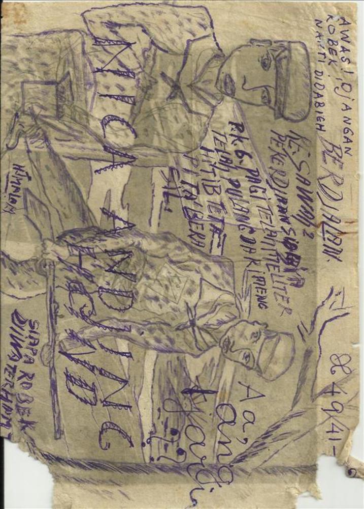 half affiche pro-Indonesië, woorden en tekening in h...