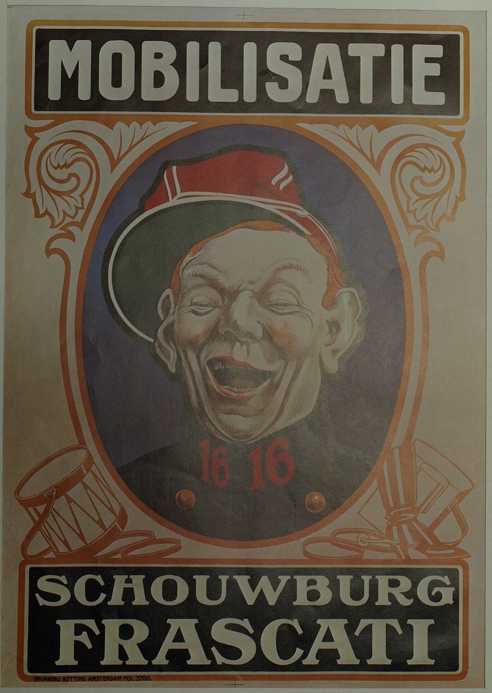 Affiche Mobilisatie met tekst Schouwburg Frascati. I...