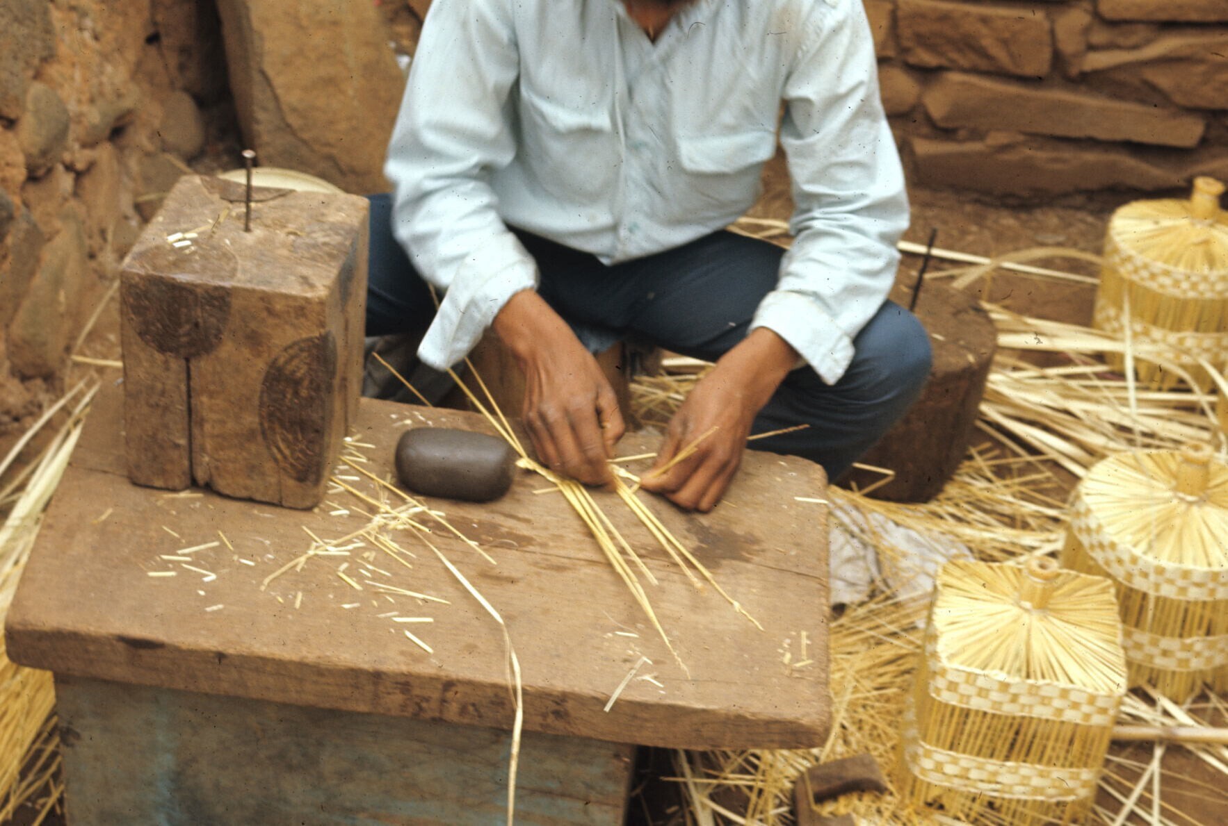 Doña Alberta, wikkelrok wevend op heupweefgetouw (la...