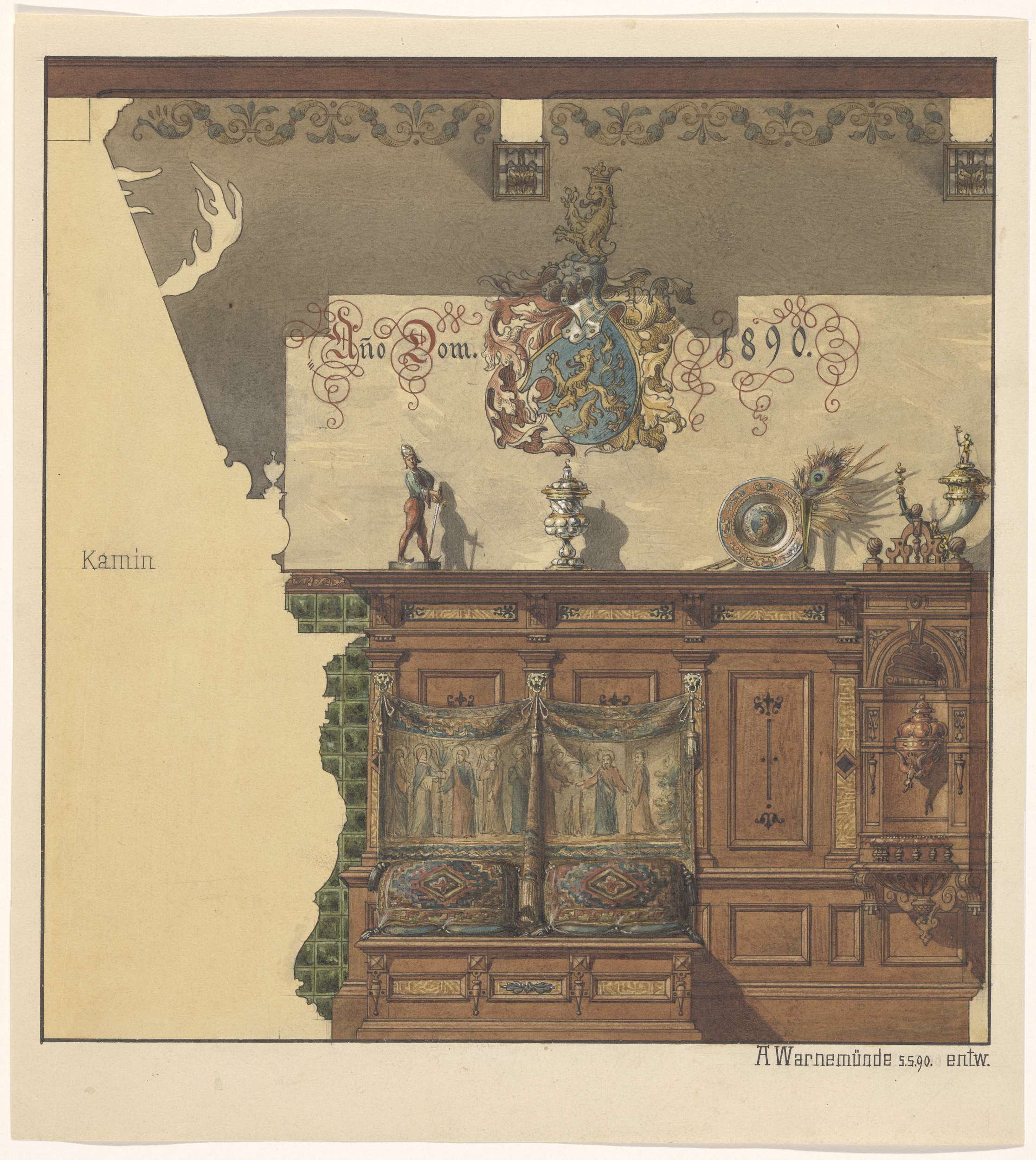 Een kamerwand in Renaissance-stijl, met een console ...