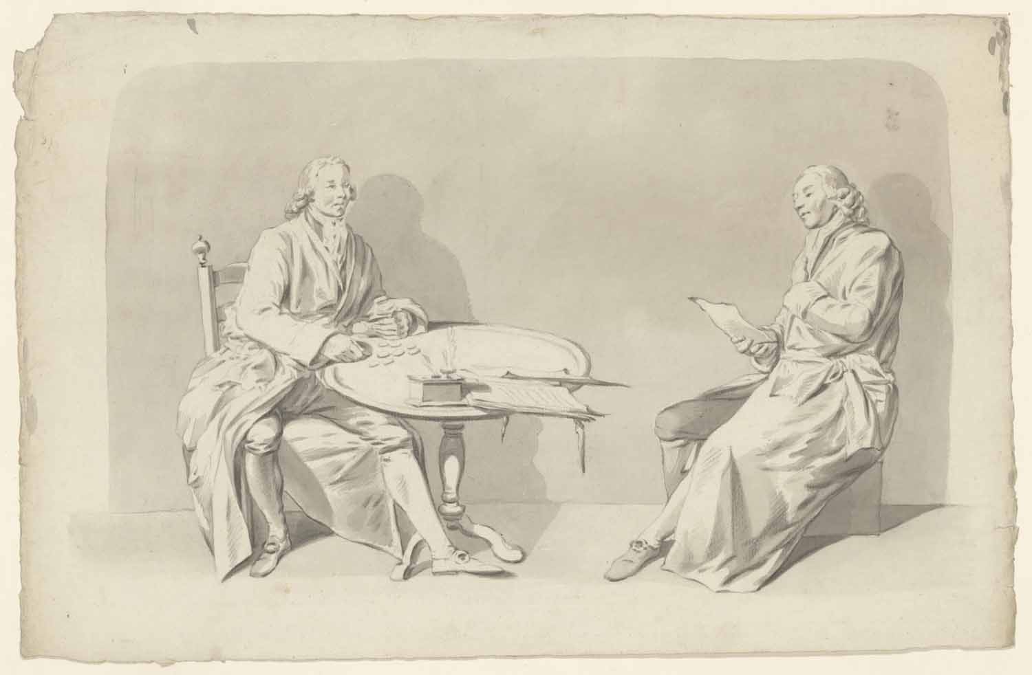 Groep van een geldtellende en een lezende man verso:...
