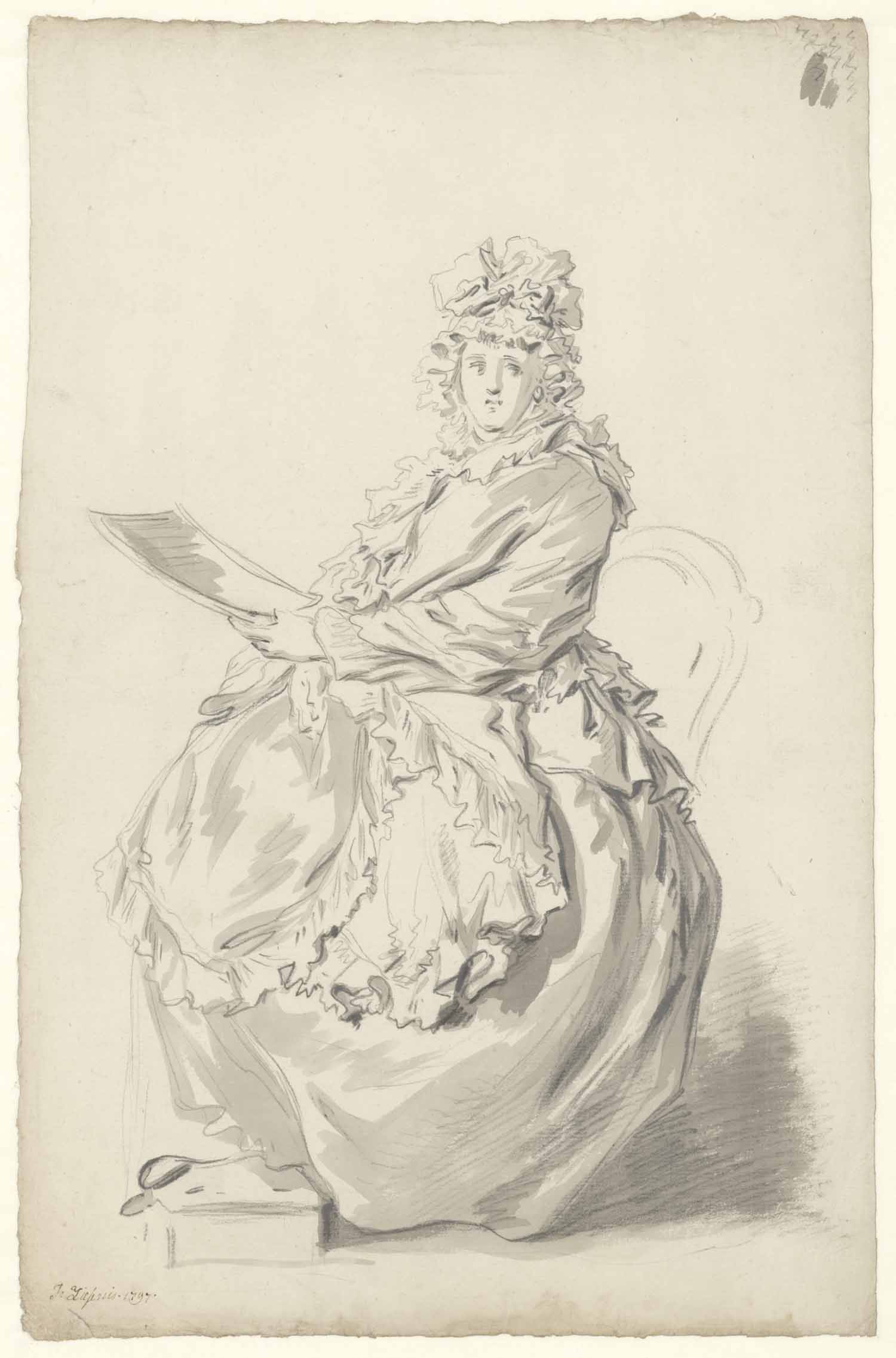 Zittende vrouw, lezende