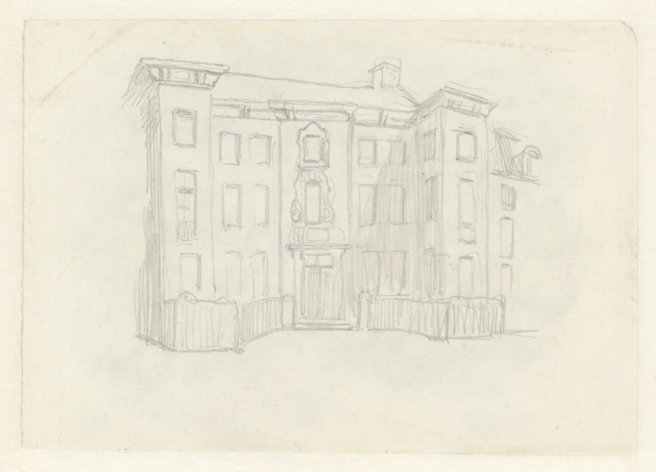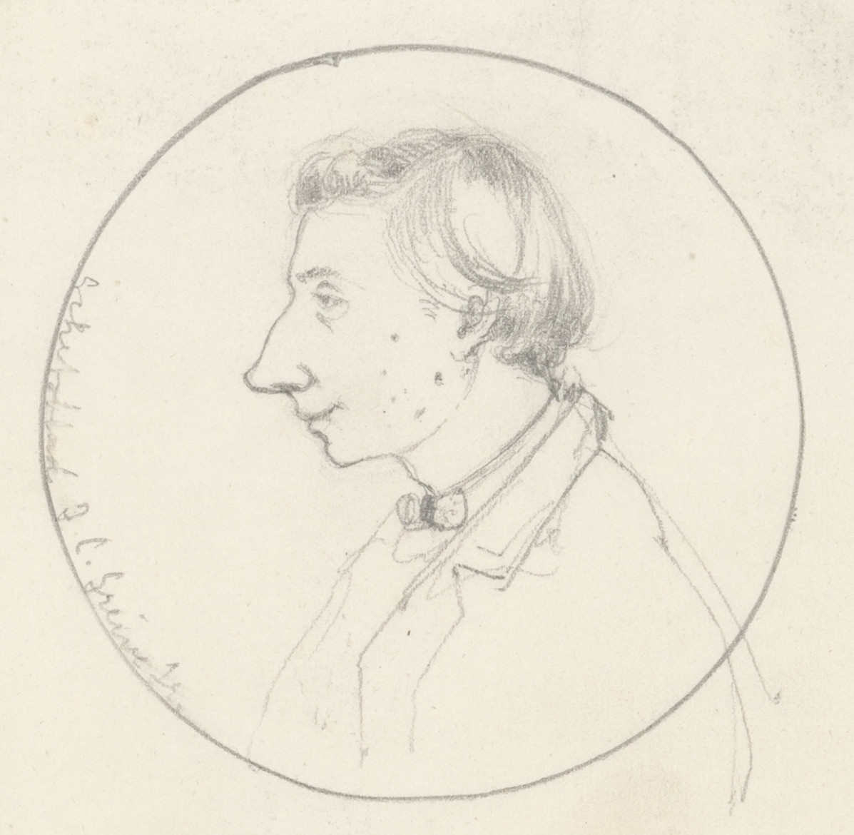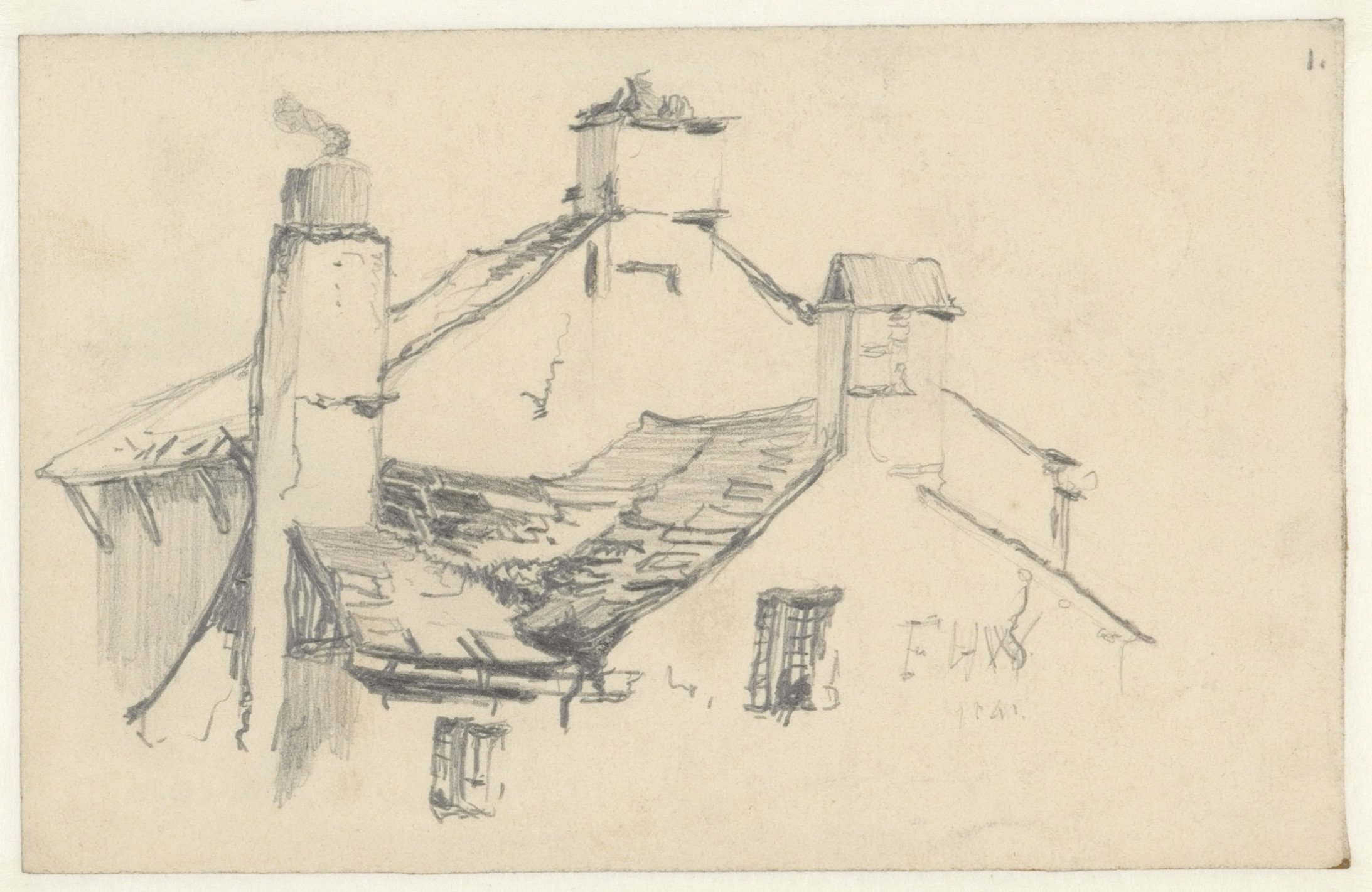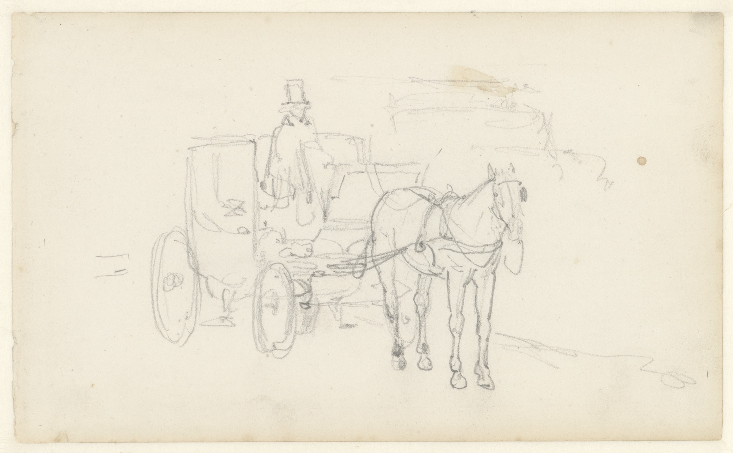 Portret en caricatuurstudies. verso: Landschapstudie