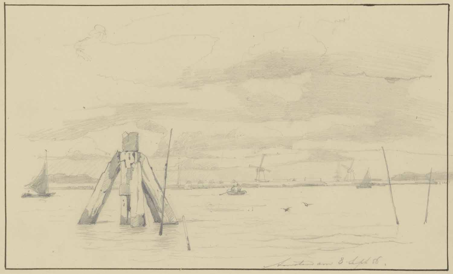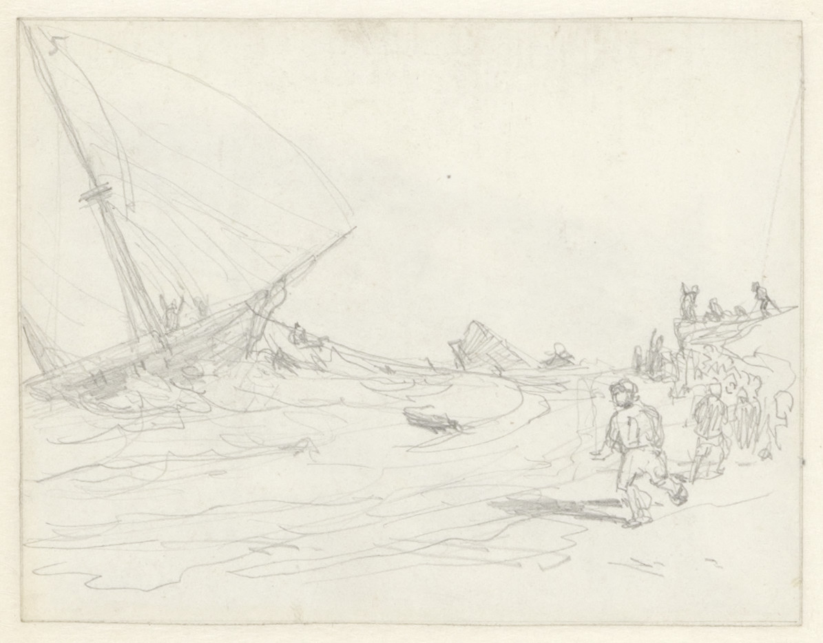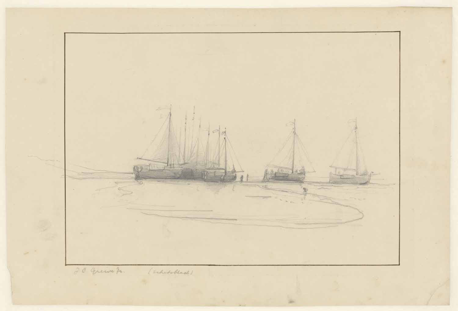 Schetsblad: Zeilschepen (tit. b. en w.: Pinken aan h...