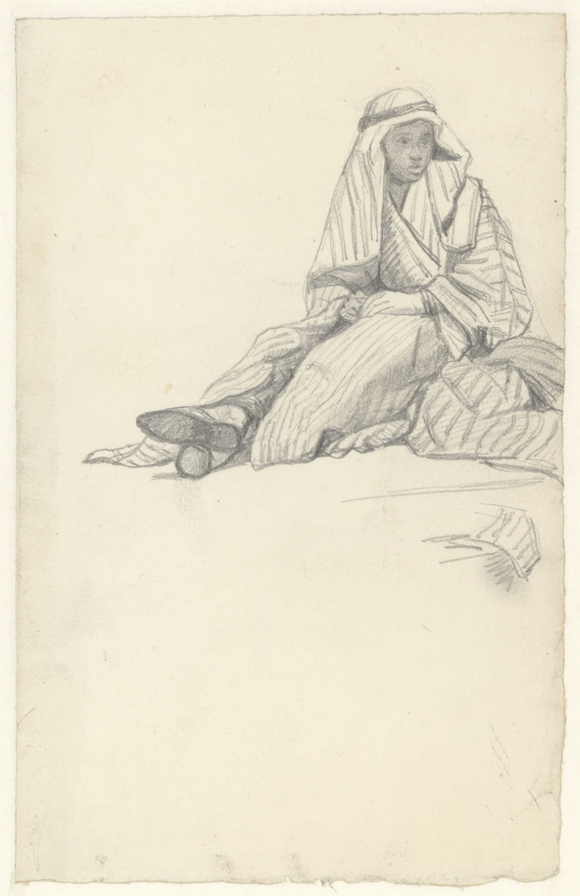Marokaansche vrouw, zittende op een matras