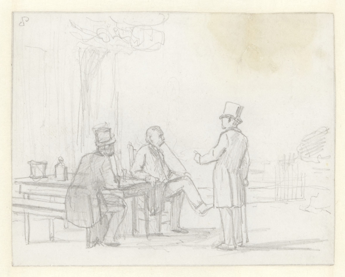 Drie heeren aan een tafel