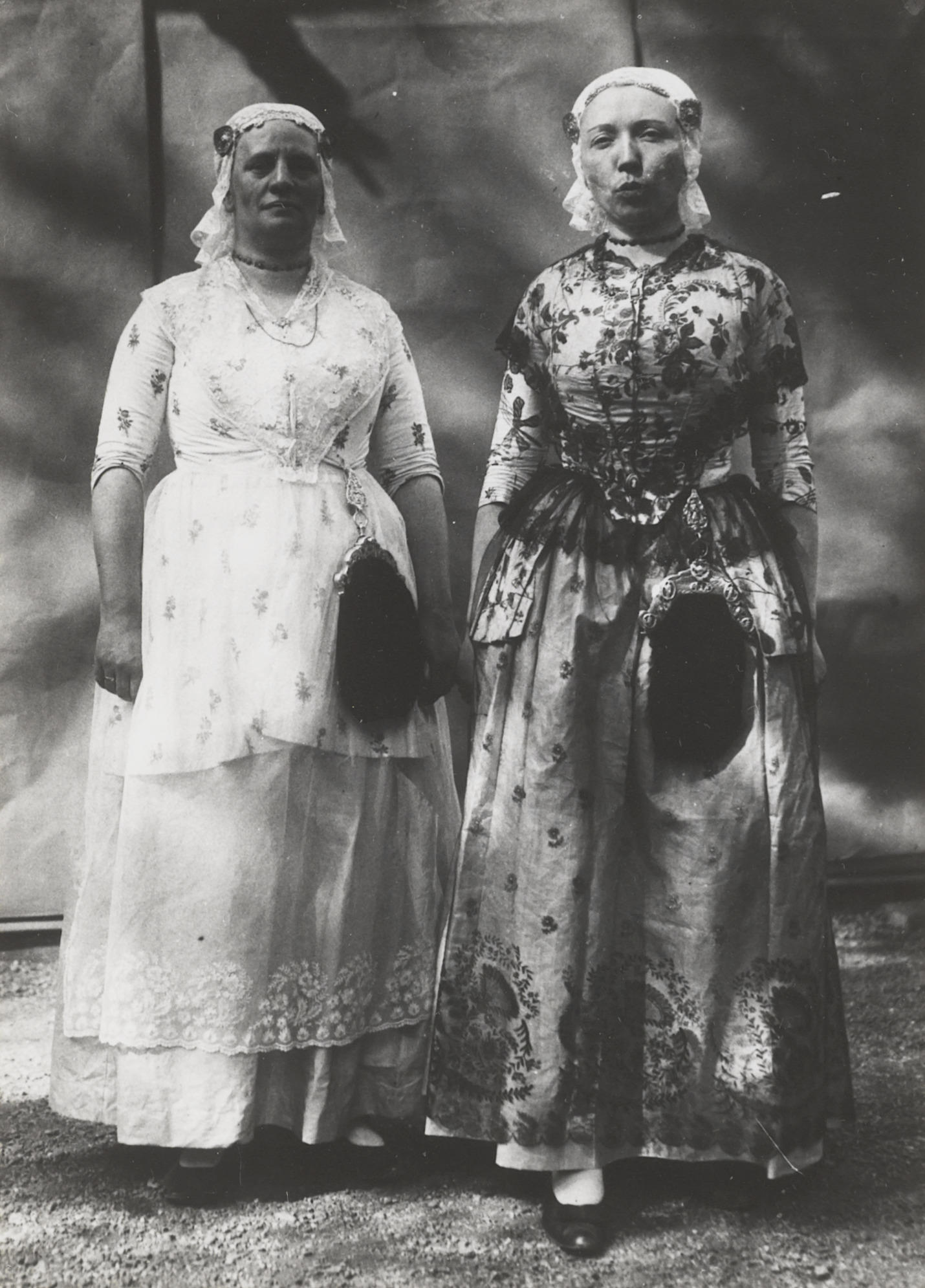 Twee vrouwen in Friese dracht, 1913 (zwart-wit foto)