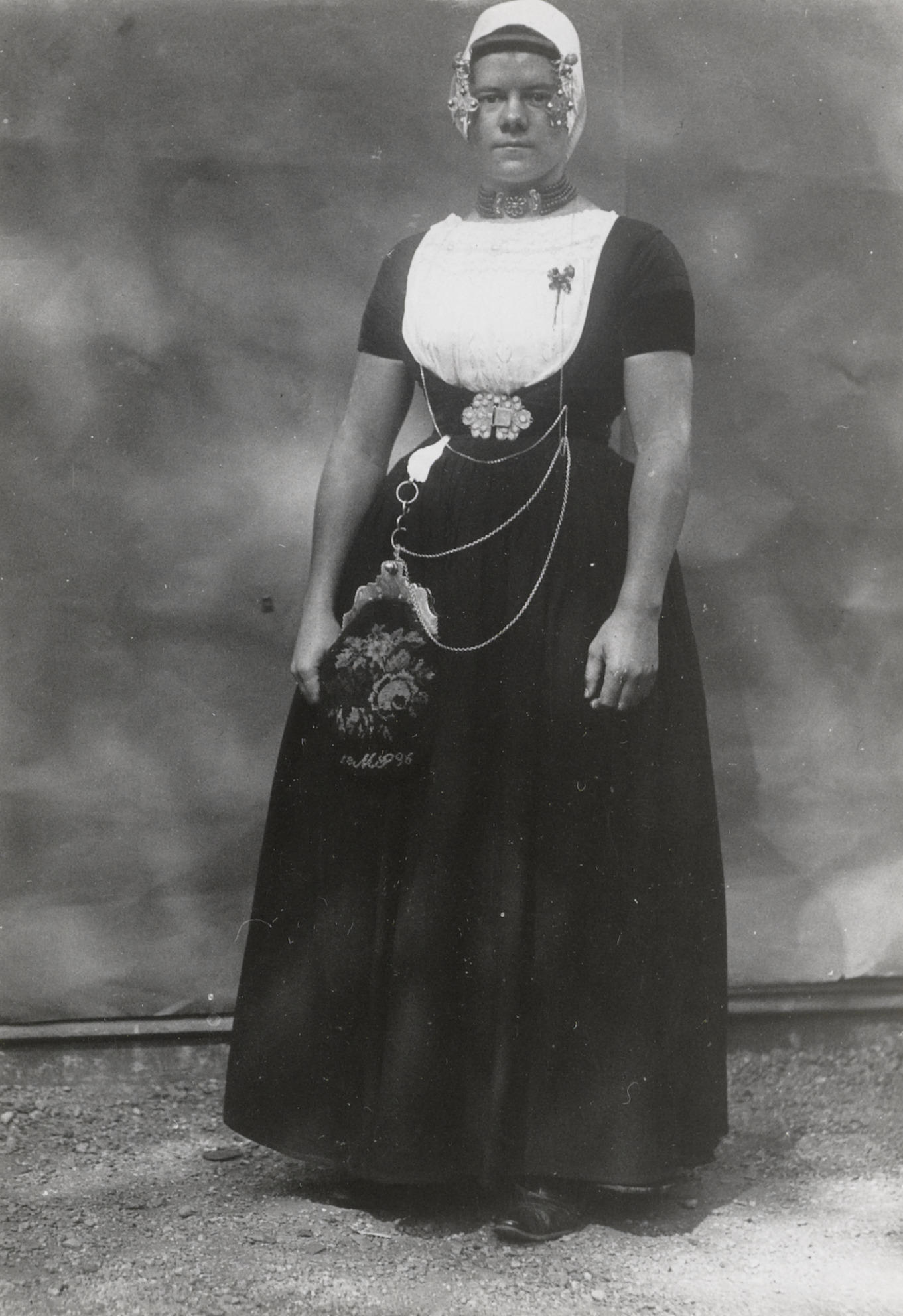 Vrouw in Walcherse dracht, 1913–1916 (zwart-wit foto)
