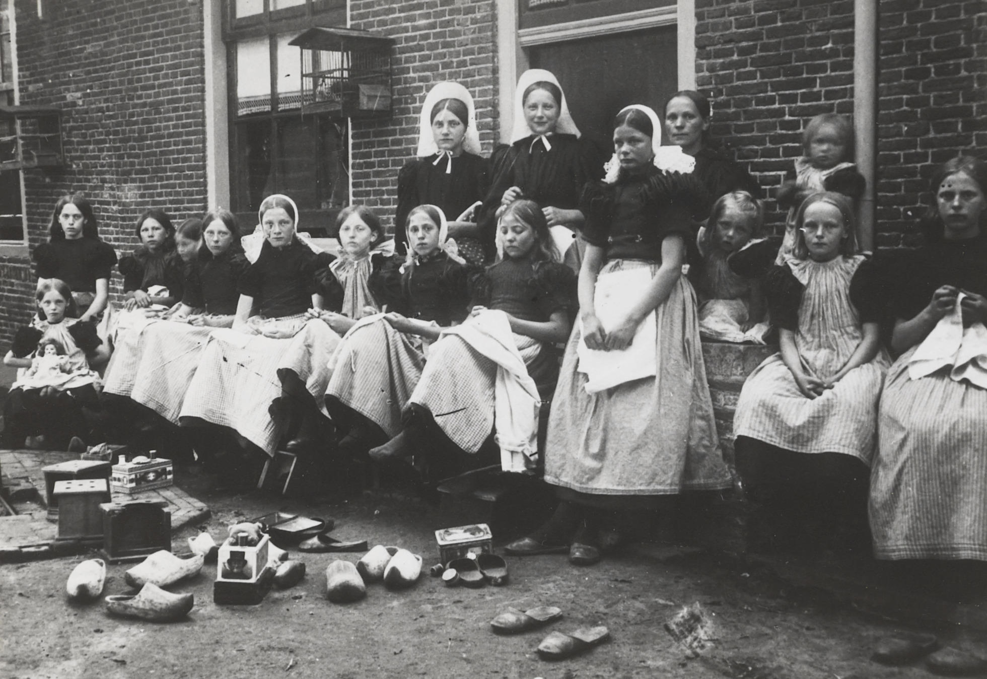 Meisje en jongen in weeskleding uit Leeuwarden, 1913...