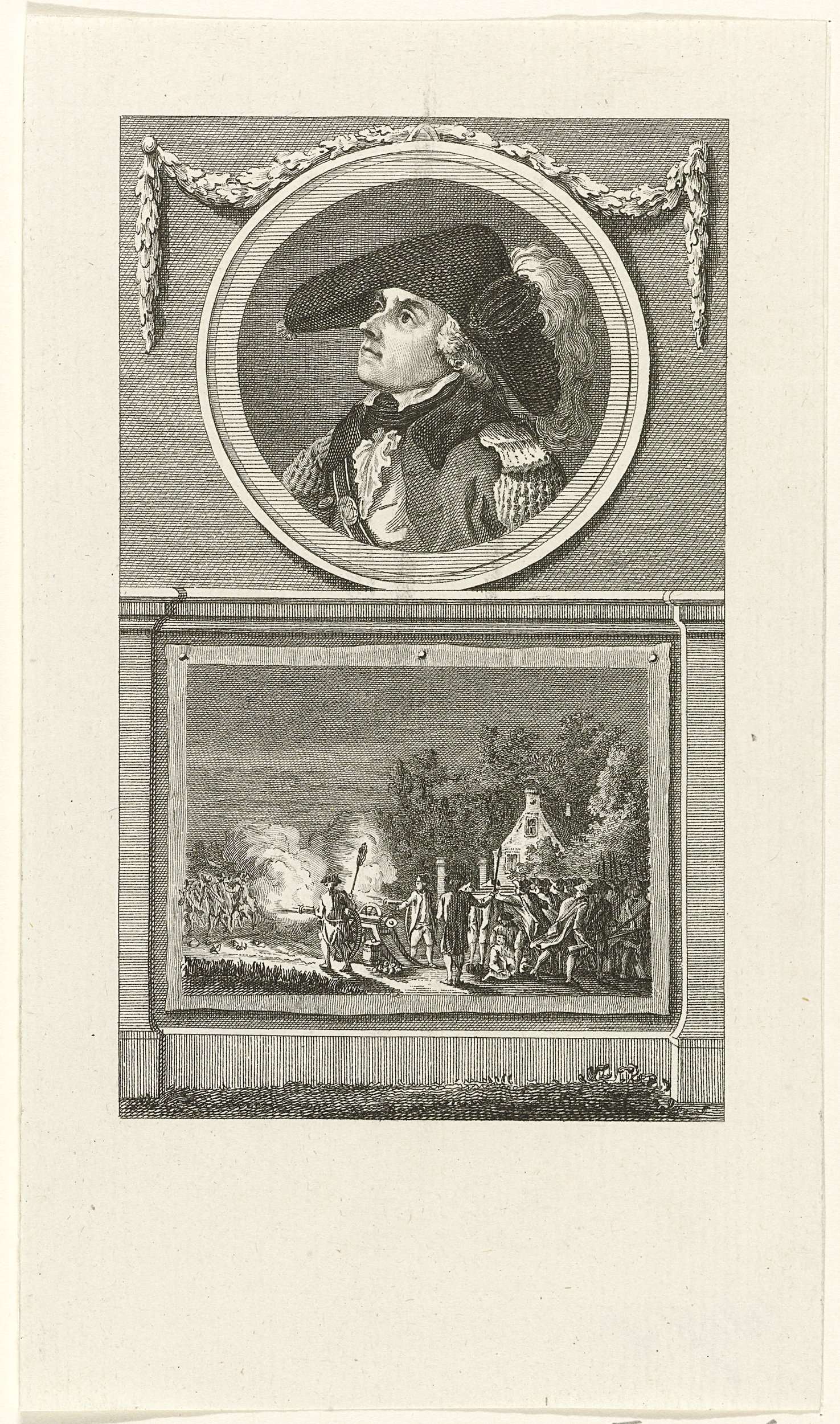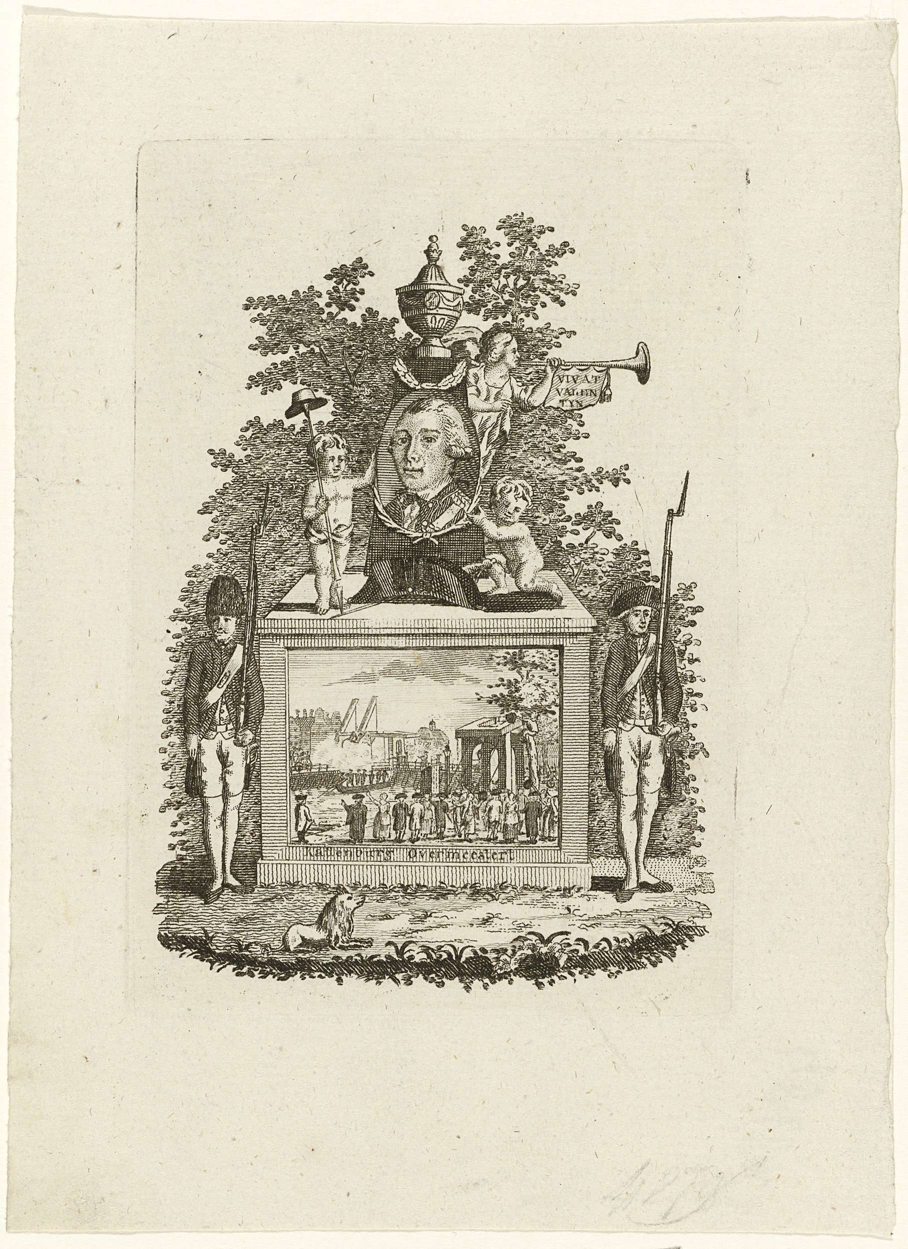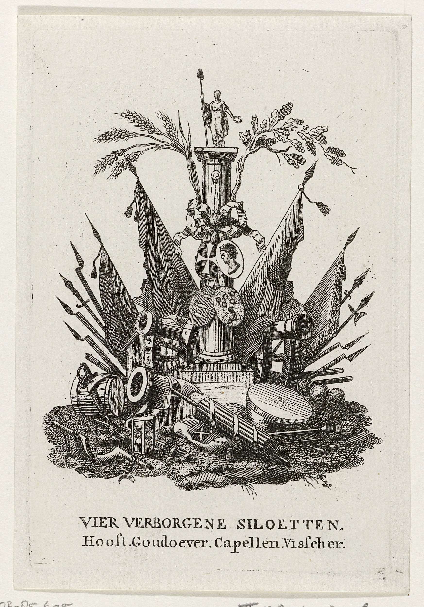 Vier silhouetten verborgen in een wapentrofee, 1787
