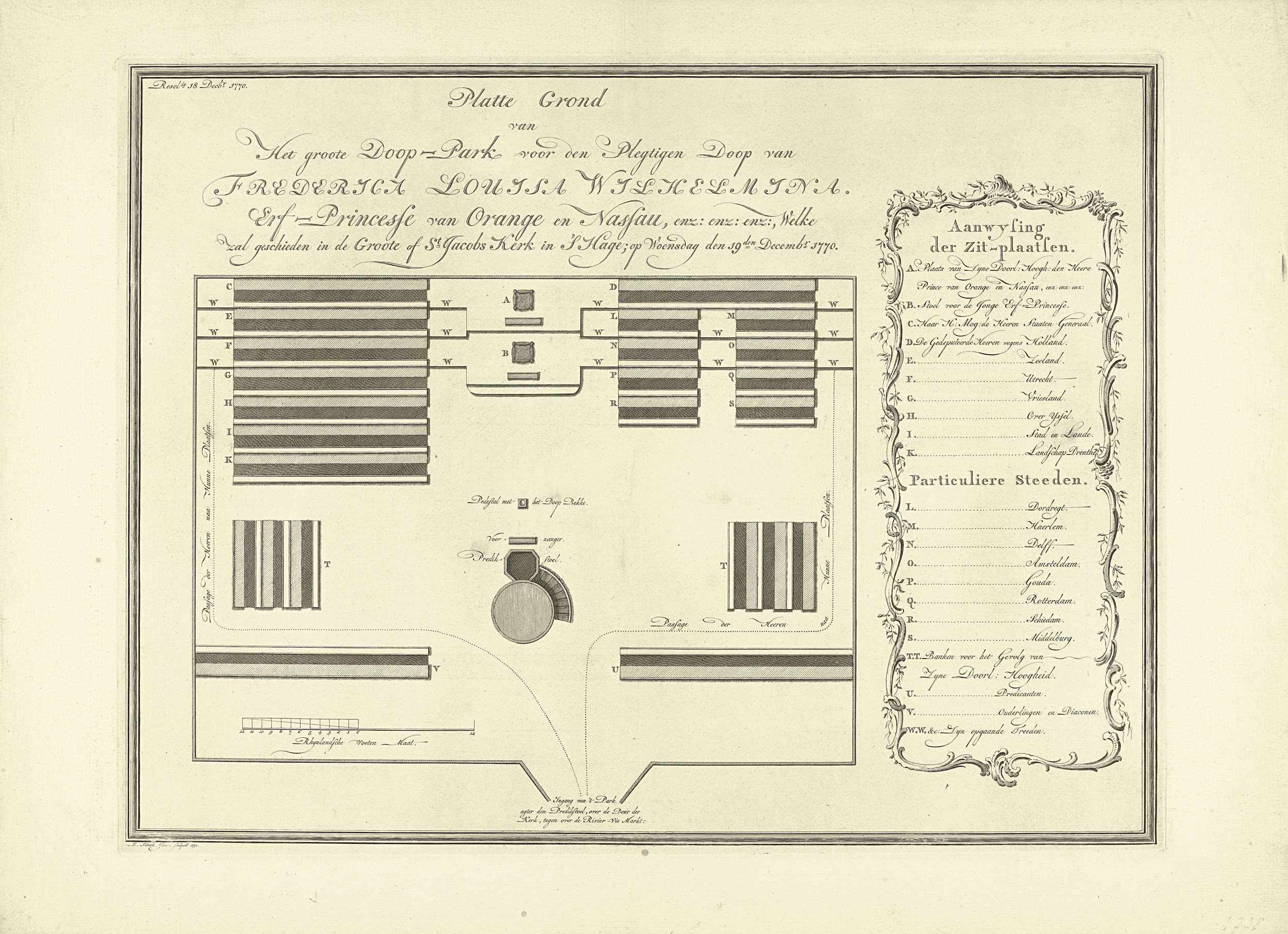 Plattegrond van de zitplaatsen bij de doop van prins...