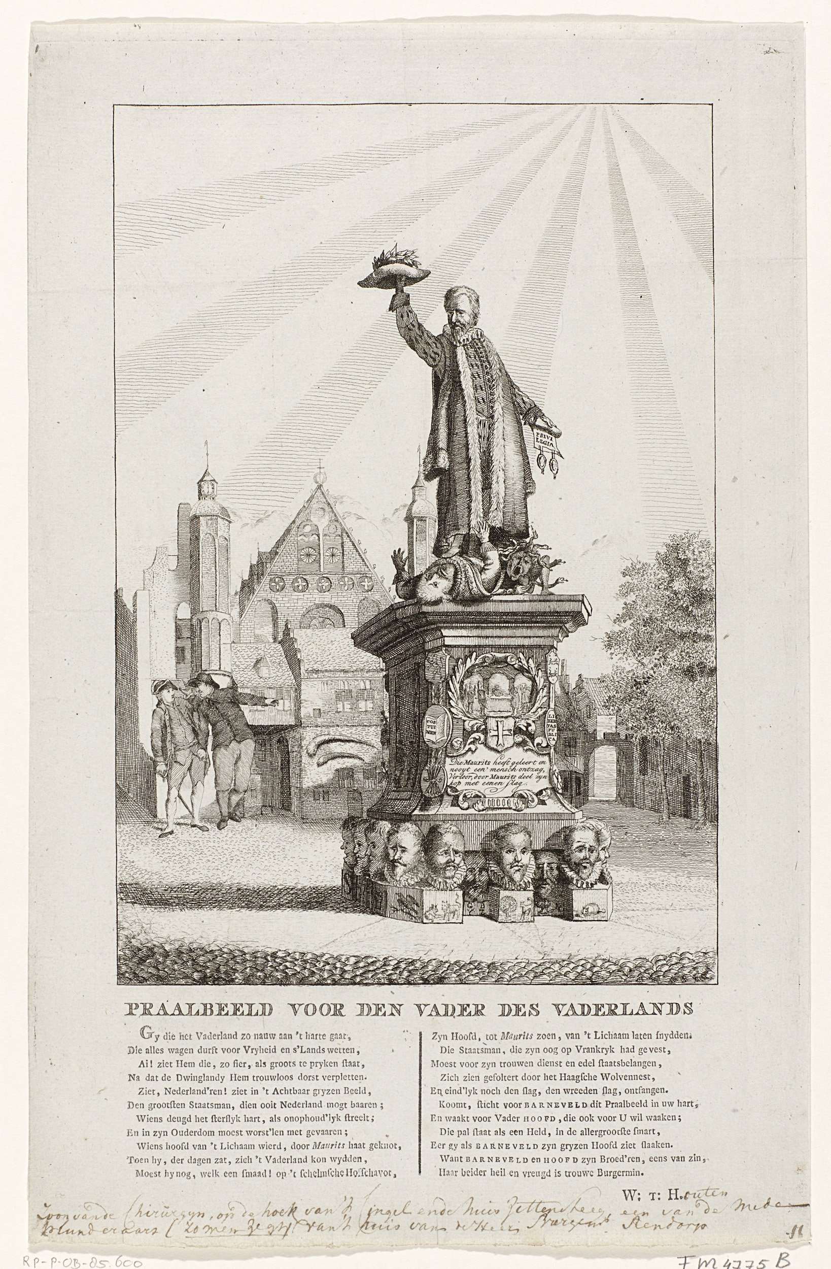 Portretten van Hooft en Goudoever aan een monument, ...