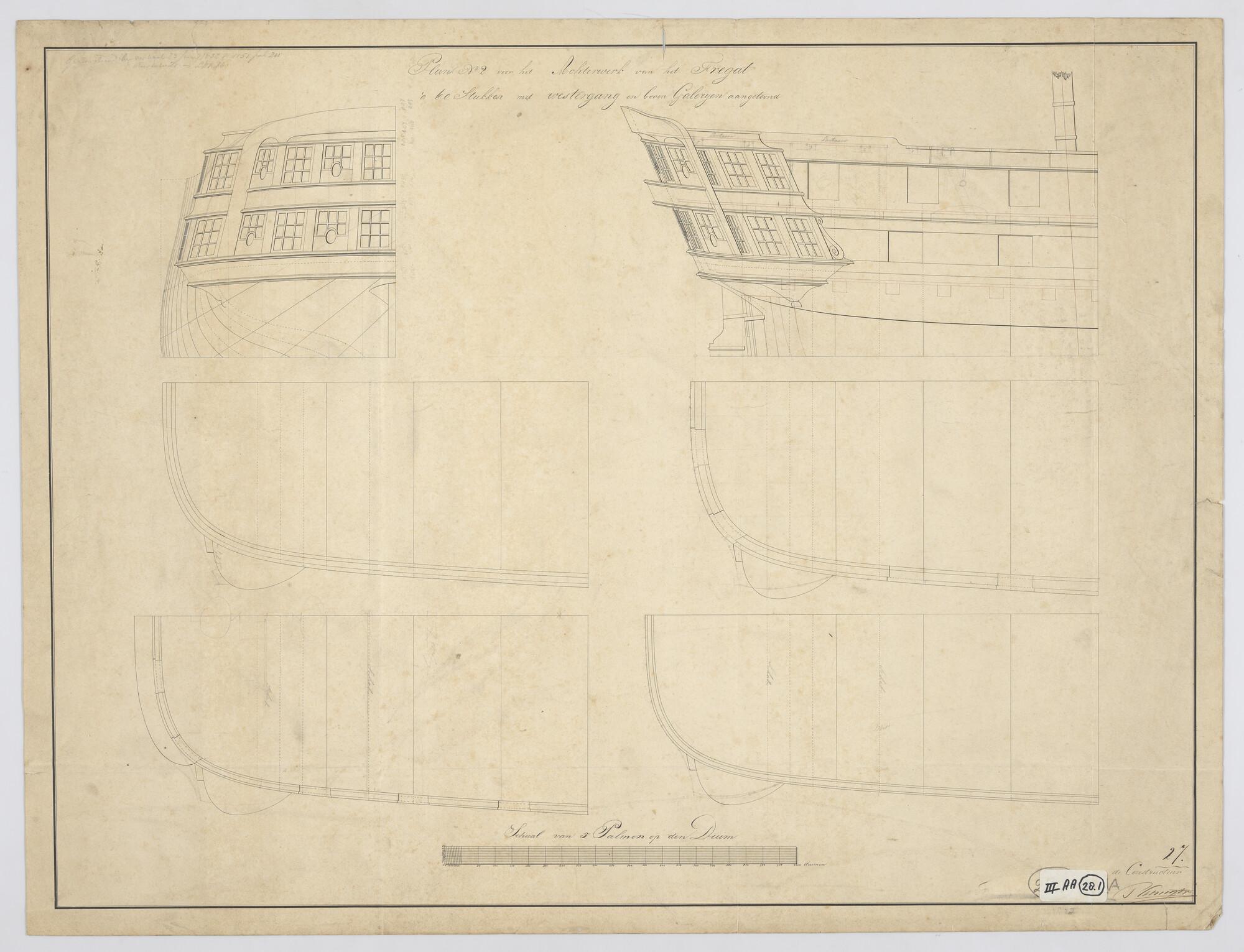 Lijnenplan van het achterschip van het fregat Zr.Ms....