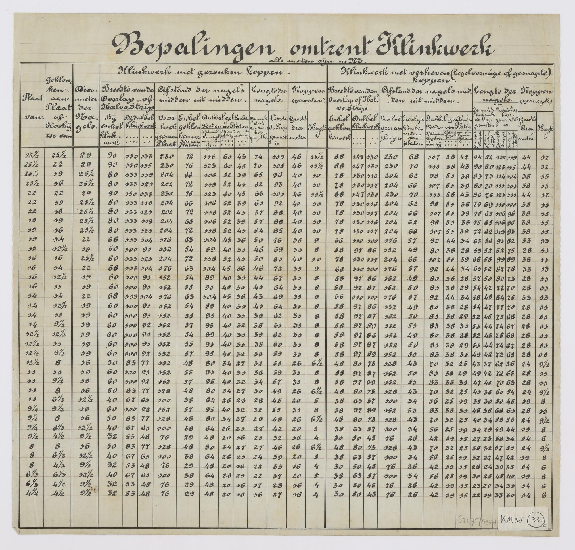 Bepalingen omtrent klinkwerk, tabellen met plaatdikt...