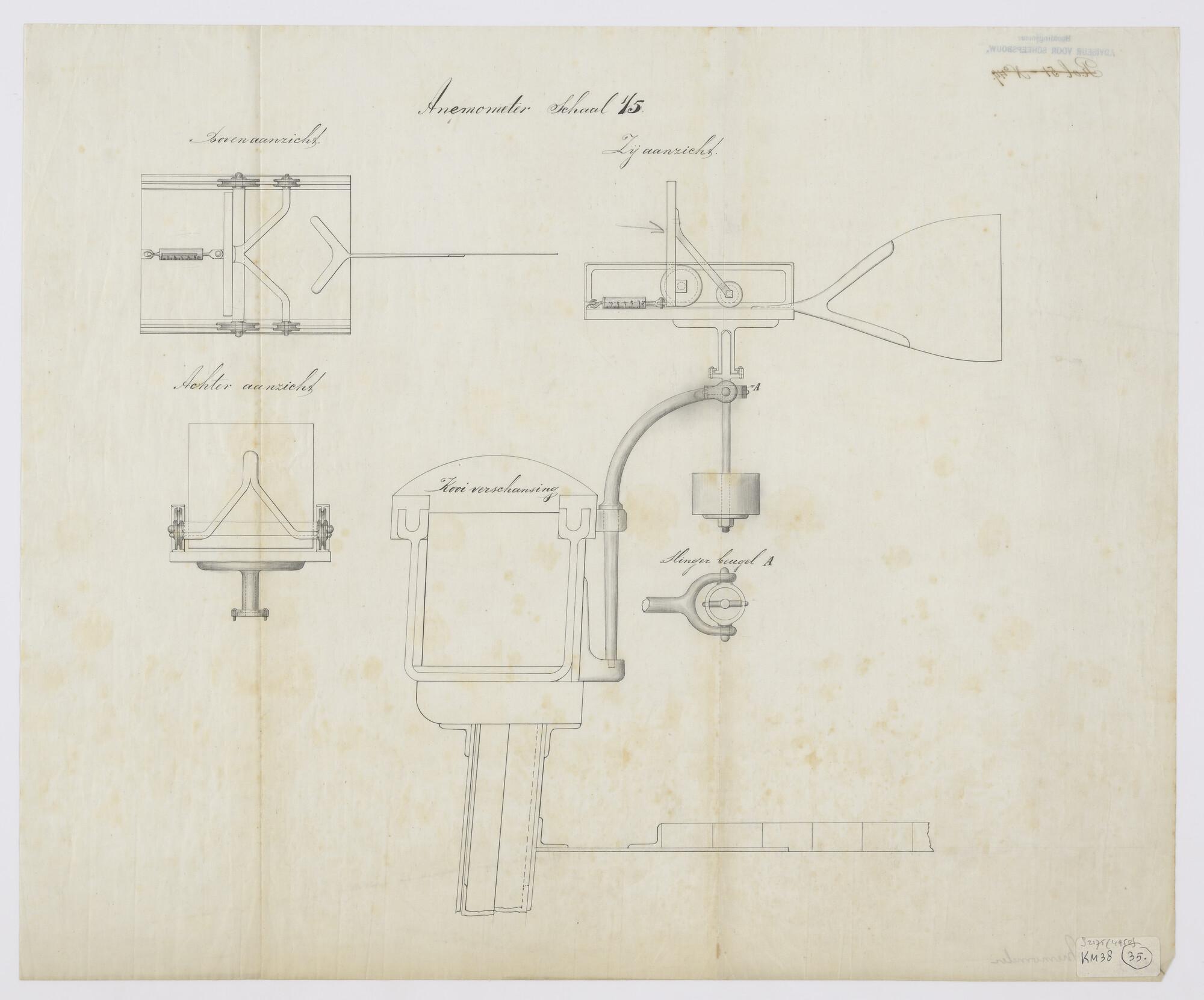 Zijaanzicht en bovenaanzicht van een thrustmeter