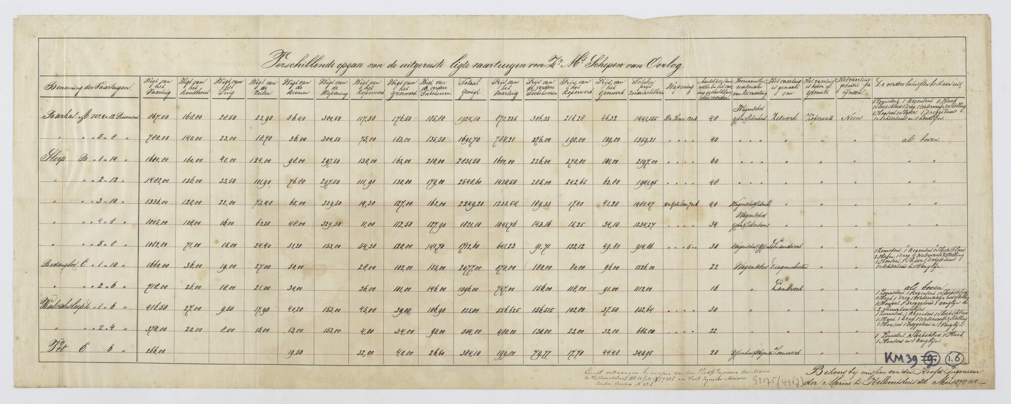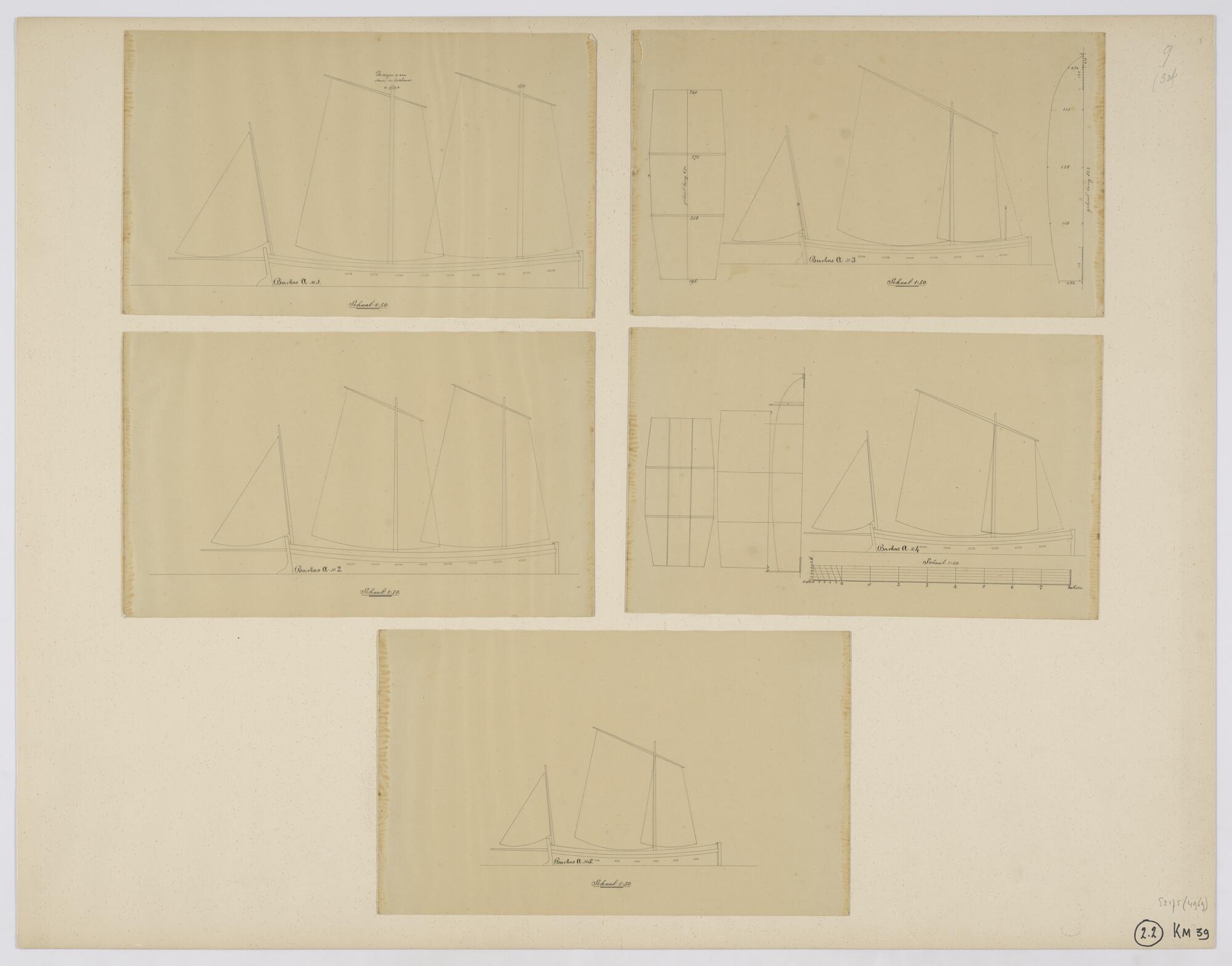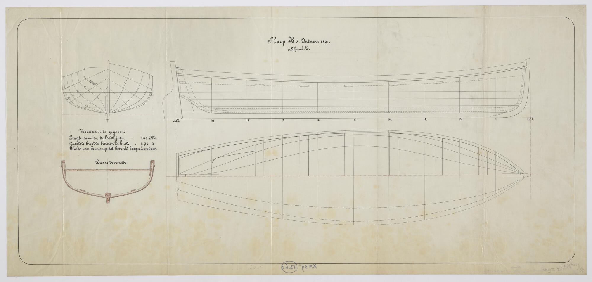 Tuig- en zeilplan van de sloep B5 (ca.1880)