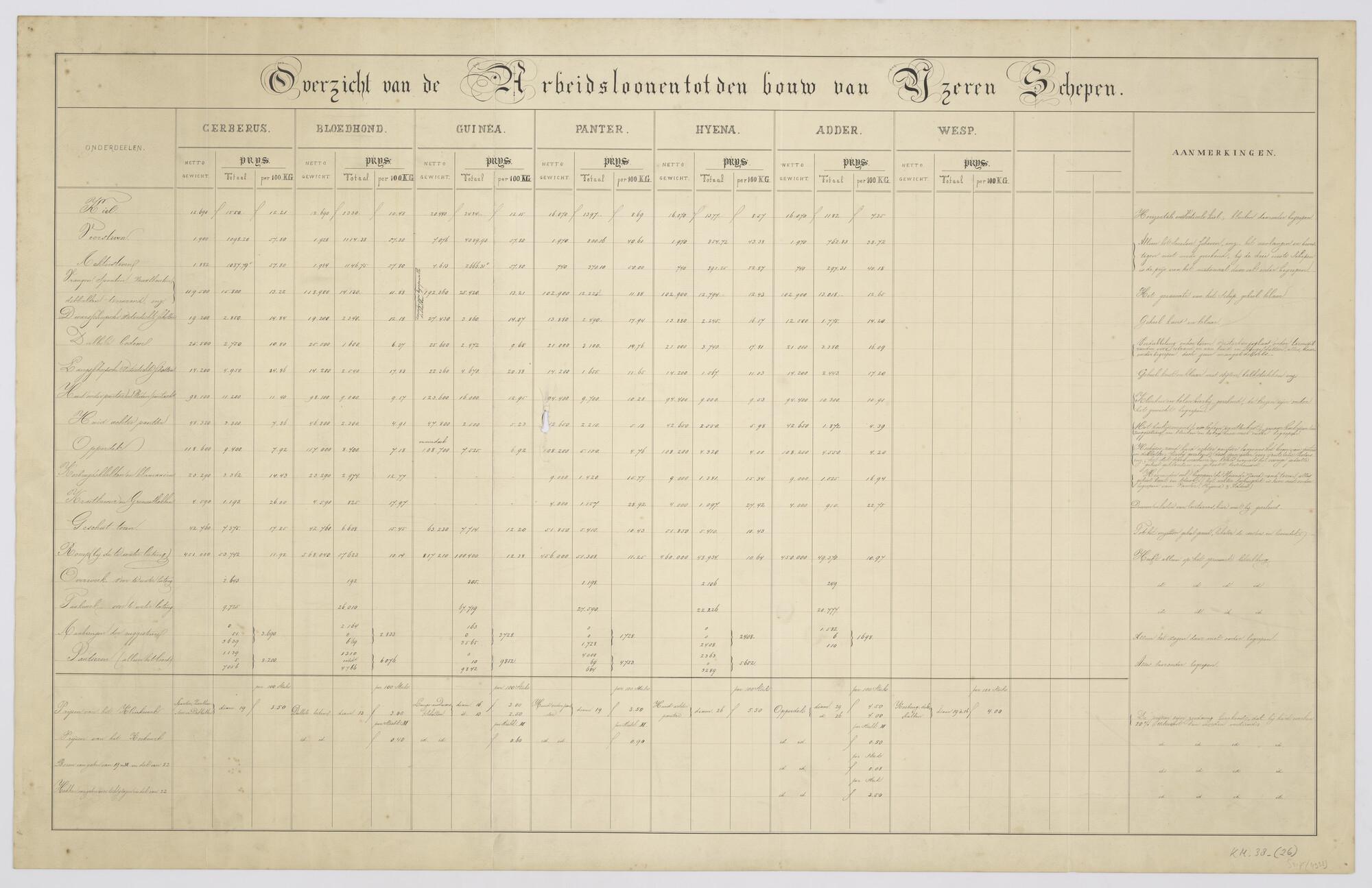 Overzicht van de arbeidslonen tot de bouw van ijzere...