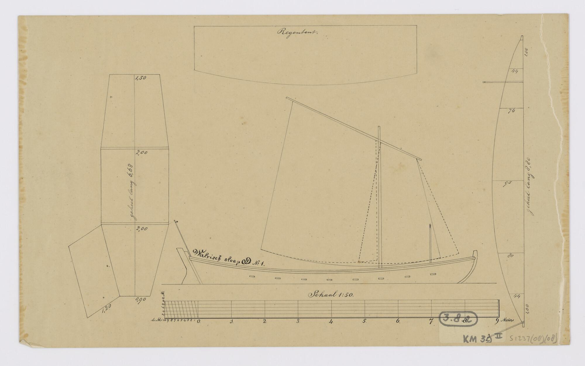Tuig- en zeilplan van de walvissloep D1 (ca.1880)