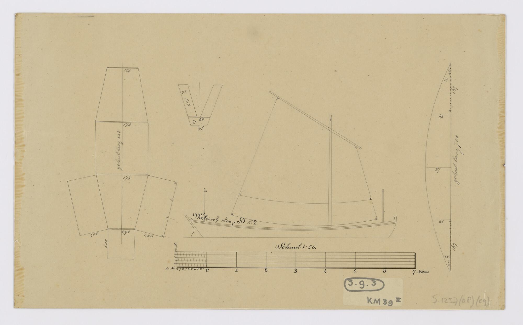 Tuig- en zeilplan van de sloep B3 (ca.1880)