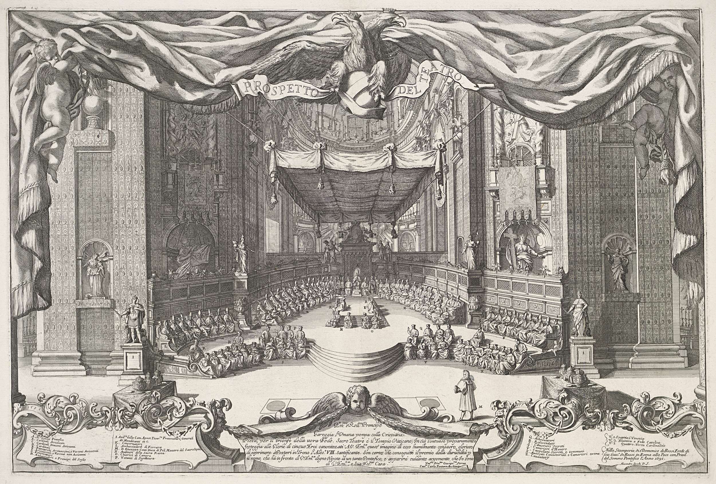 Titelprent met architecturale omlijsting en putti me...
