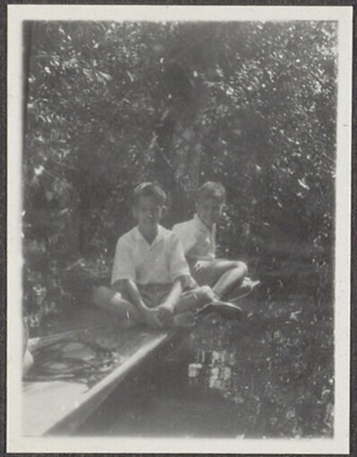 De broers Henk en Hans Japing tijdens het eten van d...