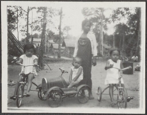 Vrouwen op Palembang met kalebassen om water te gaan...