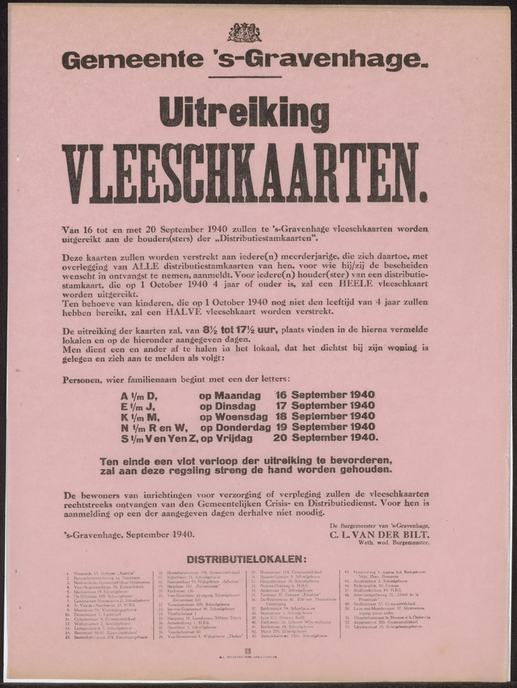 Gemeente 's-Gravenhage "Uitreiking Vleeskaarten"