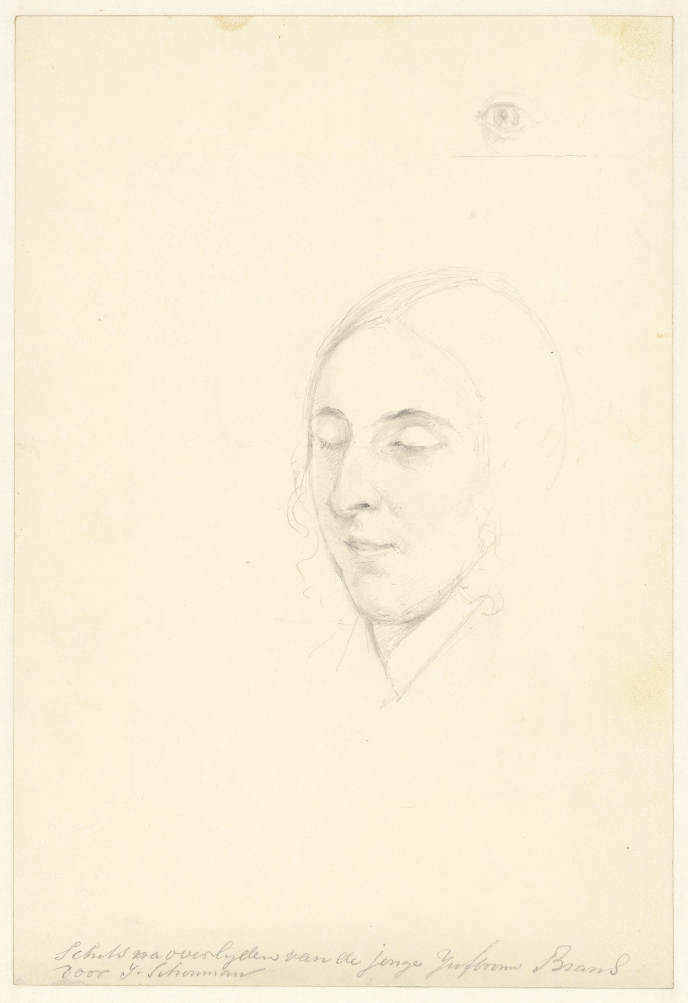 Portret van mej. Woldringh te Roosendaal. Schets van...