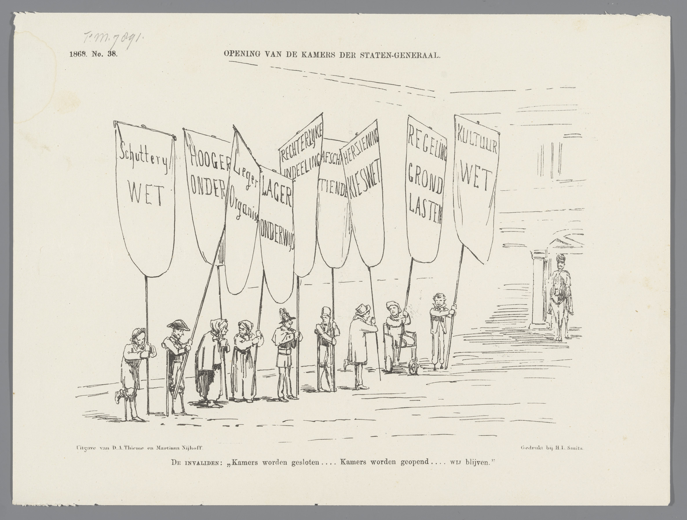 Spotprent op de afschaffing van het zegel op gedrukt...