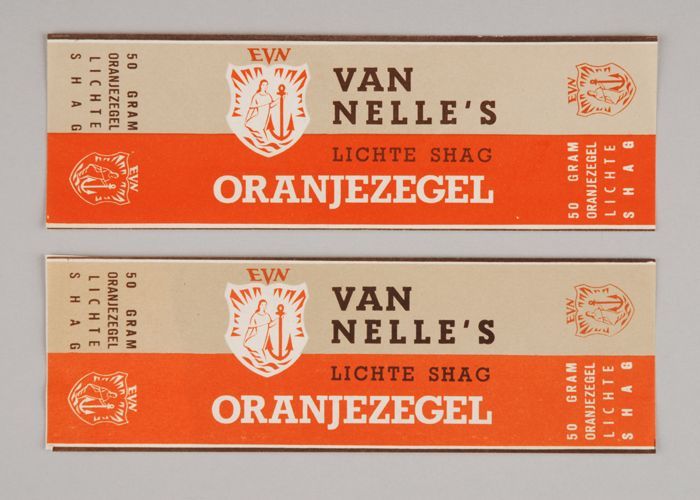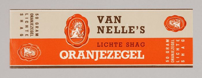 Grijs en oranje papieren label VAN NELLE'S lichte sh...