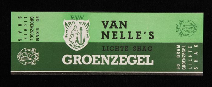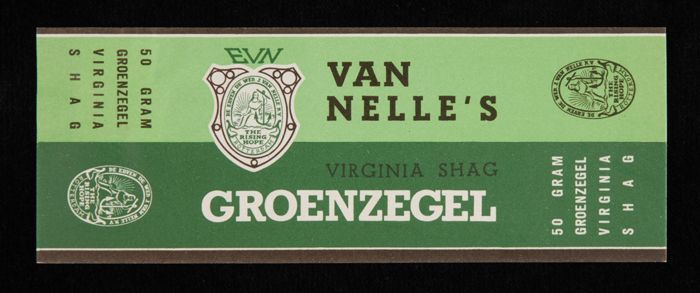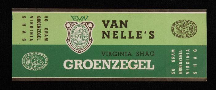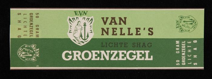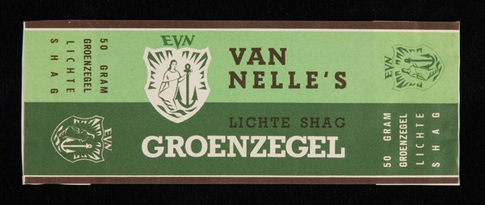 Licht- en donkergroen papieren label EVN, VAN NELLE'...