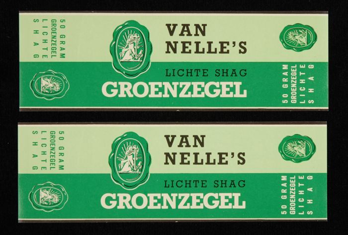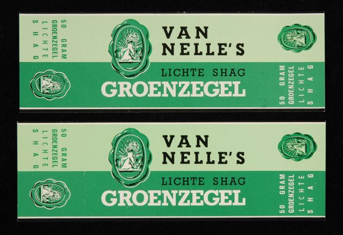 Licht- en donkergroen papieren labels VAN NELLE'S li...