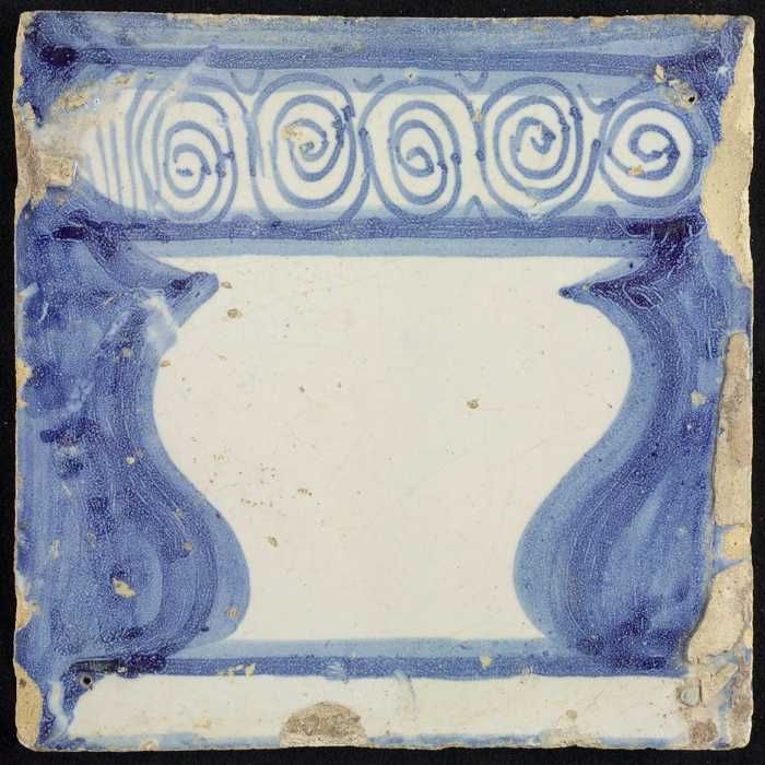 Tegel van schoorsteenpilaster, blauw op wit, deel va...