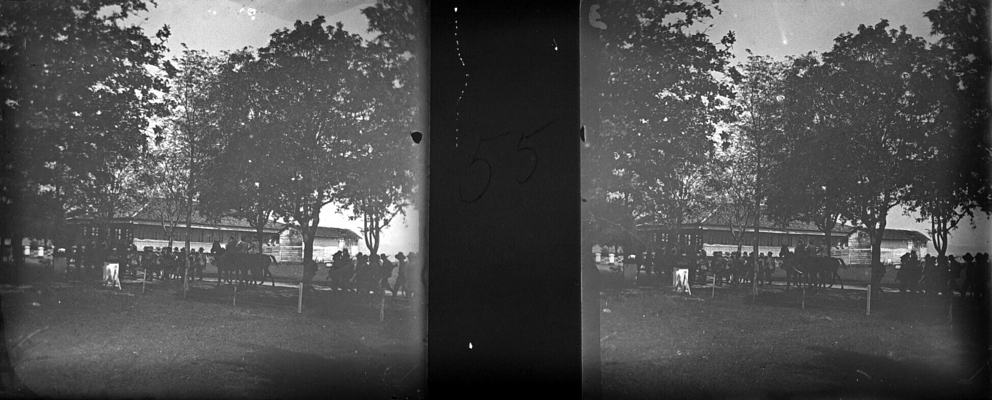 Uitladen van bagage bij een bivak van het Boschwezen...